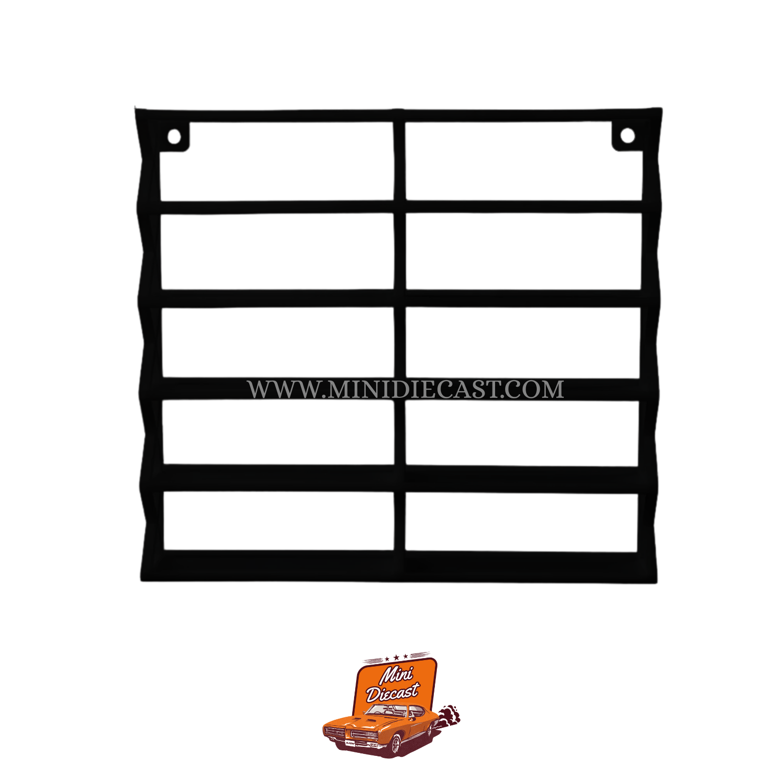 Showcase your collection like a true enthusiast with this 1:64 Diecast Car Wall Mounted Display Rack featuring 10 display spaces in black. Designed for serious collectors, this 3D printed rack lets you neatly organize and display up to 10 of your favorite 1:64 scale die-cast models in one sleek wall-mounted unit.