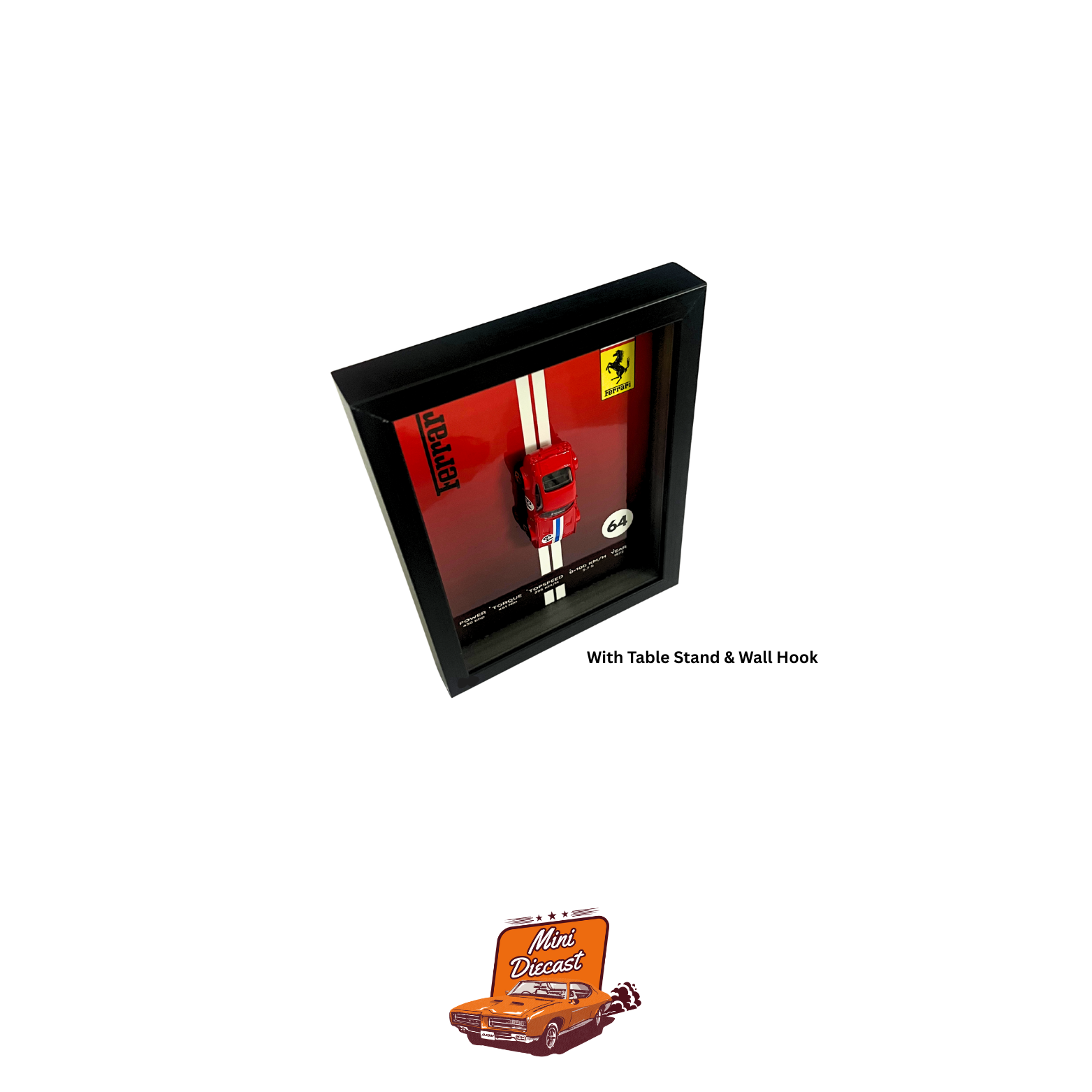 Celebrate classic endurance racing with the 3D Car Frame – Hot Wheels Ferrari 365 GTB4 Competizione – A5 Size. This collectible 3D frame features an authentic Hot Wheels diecast car, pre-mounted on a rich, themed background that highlights Ferrari’s legendary racing heritage and craftsmanship.