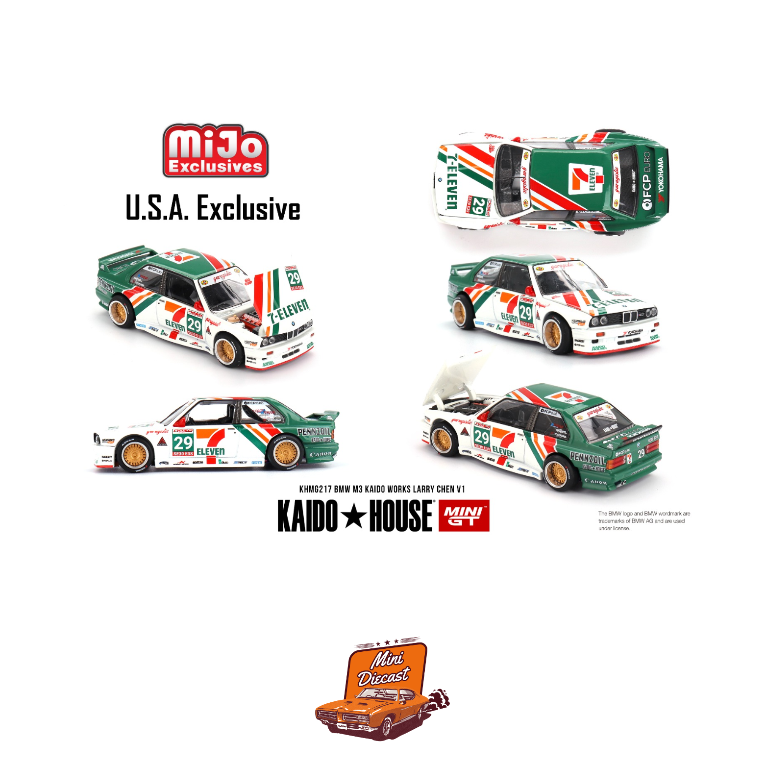 Get ready for one of the most anticipated Kaido House collaborations with the Kaido House x Mini GT #217 BMW M3 Kaido Works Larry Chen V1 (USA Exclusive). This 1:64 scale collector’s edition combines JDM-inspired styling with German engineering and Larry Chen’s signature creative flair — a true showcase piece for die-cast collectors.