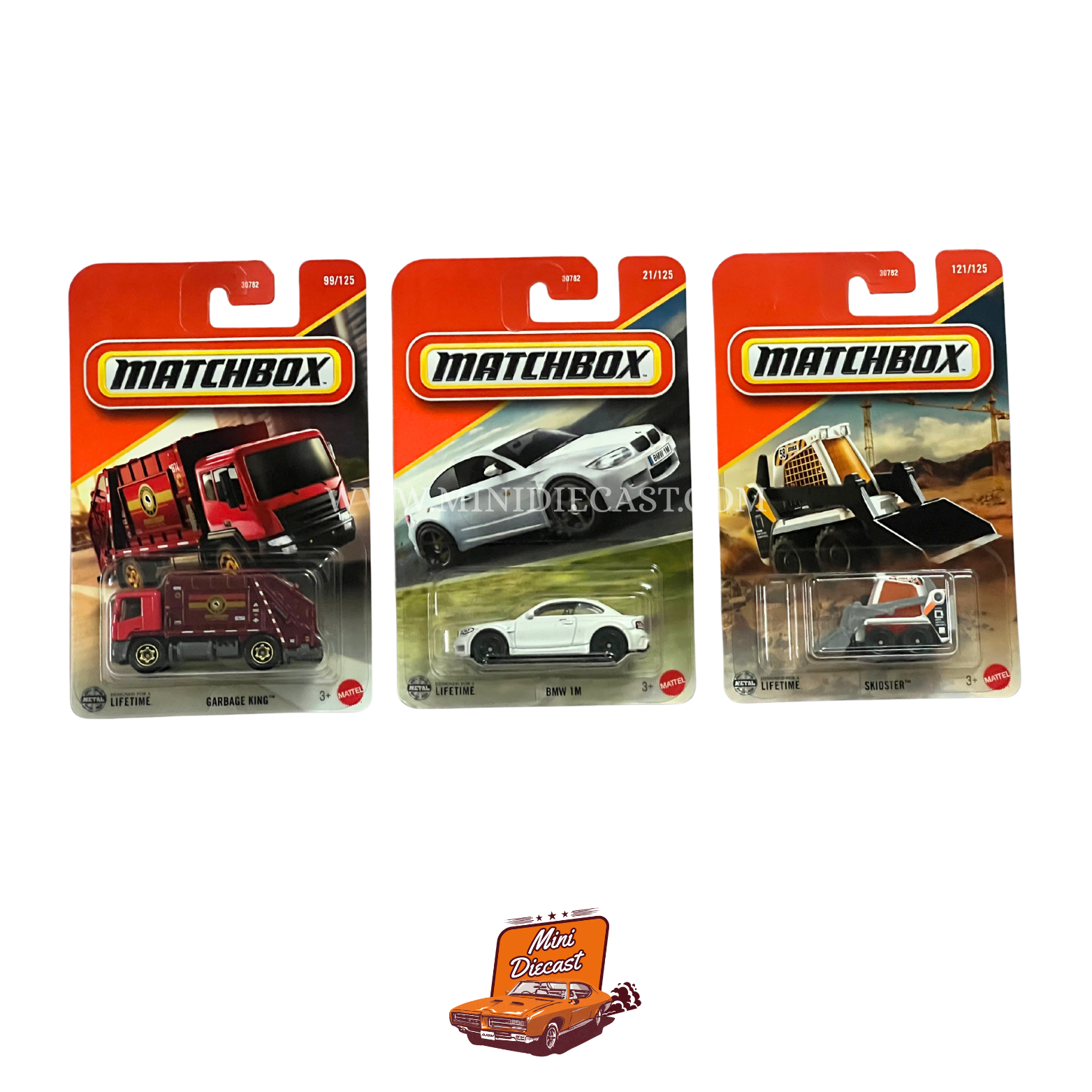 Matchbox (Set of 3) – Garbage King / BMW 1M / Skidster