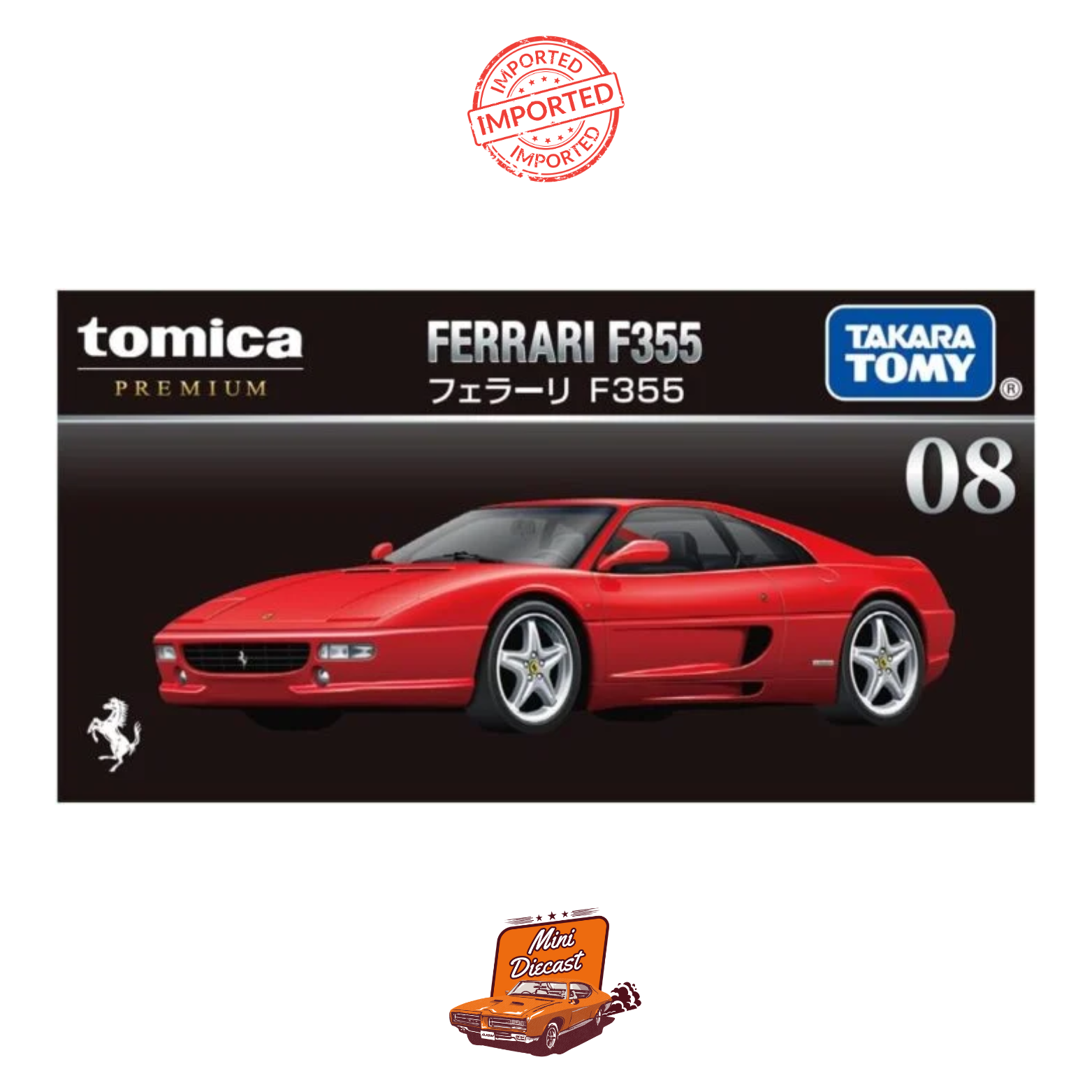 Experience the passion of Italian engineering with the Takara Tomy Tomica Premium 08 Ferrari F355, a sealed imported 1:64 scale diecast model crafted with precision and authenticity.